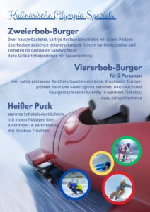 Kulinarische Olympia Specials   …es wird nicht nur OLYMPIA in unserer gemütlichen Fernseh-Lounge übertragen, es gibt sogar auch kulinarische „OLYMPIA-Specials“ auf unserer Speisekarte.   Wir